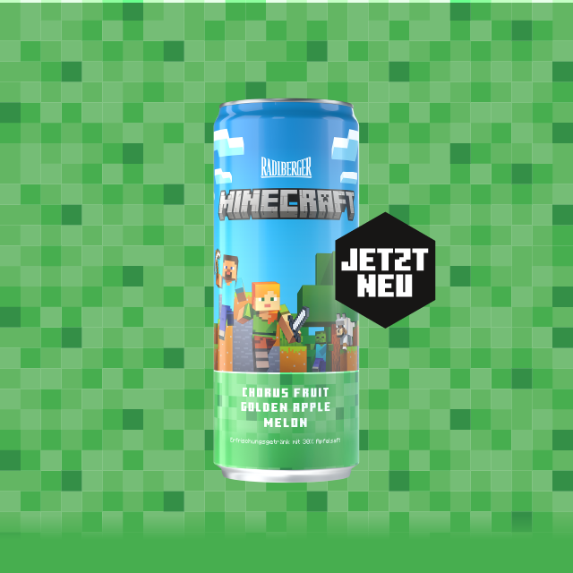 Radlberger Limonade trifft auf die Welt von Minecraft – natürlich, fruchtig, kultig.